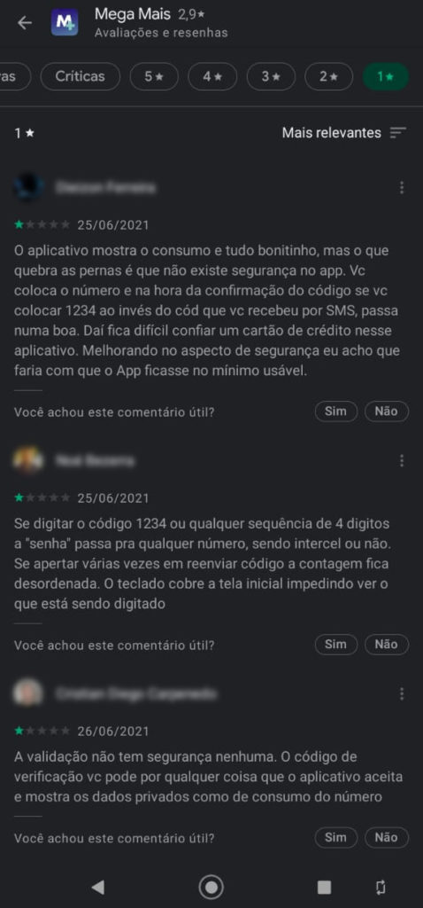Já em outros aplicativos não há a mesma falha de segurança, como é o caso do Uber Chip, Cruzeiro Telecom e Surf Recarga, por exemplo.
