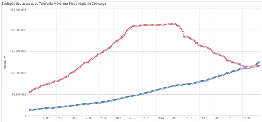 Para termos uma ideia, a quantidade de linhas pré ultrapassava 80% entre os celulares do Brasil no ano de 2010.