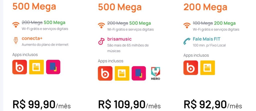 - Assine 200 leve 500 Mega está de R$ 109,90/mes, com direito ao app brisamusic.