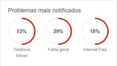 Os problemas mais notificados foram: 53% telefonia móvel, 29% em falha geral e 18% na internet fixa.