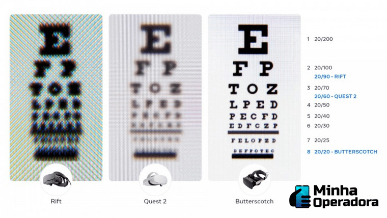 Em uma imagem divulgada pela Meta é possível comparar as três versões dos óculos: Rift, Quest 2 e, mais recentemente, Butterscotch (“caramelo”, em português). Veja: