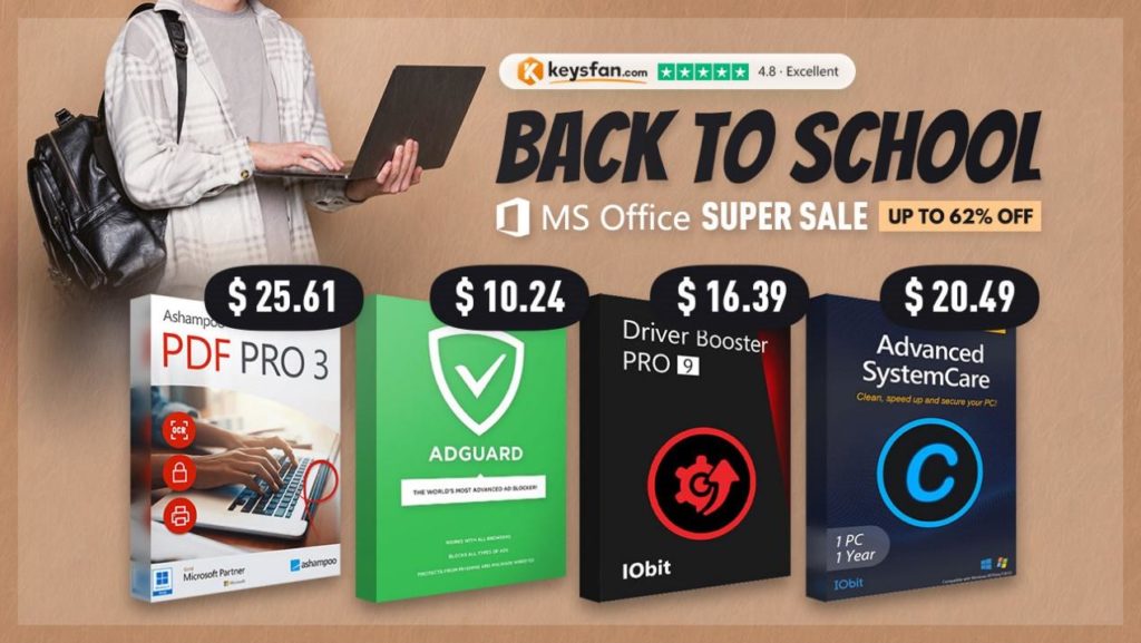 A Keysfan também oferece uma ampla seleção de software de ferramentas para computador, incluindo jogos de última geração, software antivírus de segurança, software de edição de vídeo e uma variedade de outros aplicativos e programas. Você pode se beneficiar de incríveis ofertas de baixo custo em softwares famosos que eles oferecem como Ashampoo PDF Pro 3 ou IObit Driver Booster 9 Pro!
