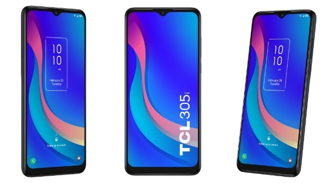 O TCL 305i é o modelo mais básico da linha e ainda o mais barato, custando menos de R$ 1 mil. Seu processador Quad-Core de 1,5GHz com GPU PowerVR GE8100 trabalha em conjunto com um armazenamento interno que pode ser de 32GB ou de 64GB, com expansão até 512GB via cartão MicroSD. Seu sistema operacional é o Android 11 Go.