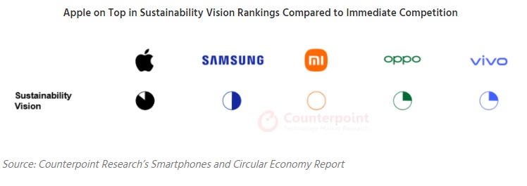 De acordo com uma pesquisa divulgada pela Counterpoint Research, dentre as cinco maiores fabricantes de smartphones do mundo, a Apple e a Samsung são as que mais têm apresentado medidas de sustentabilidade mais objetivas e eficazes. Isso mostra, que mesmo havendo muito trabalho pela frente, as empresas tem acertado nas suas abordagens de sustentabilidade.