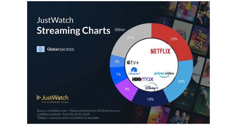 Segundo informações do JustWatch, mesmo diante de críticas e cancelamentos por seus preços elevados, a Netflix mantém sua liderança e domina o mercado de plataformas de streaming. A Apple TV+, por sua vez, ocupa a última posição da lista, como a plataforma com menor popularidade. Abaixo, você pode conferir a lista completa: