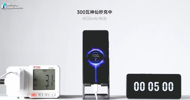 A Xiaomi lançou carregador que completa bateria em cinco minutos. A promessa é um carregamento rápido de bateria de 300W, que faz o celular ir de 0% a 100% em pouquíssimo tempo!
