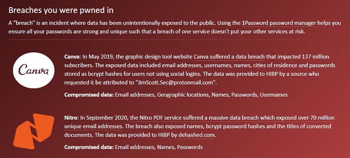 Caso esses dados estejam envolvidos em algum caso de vazamento, o site fornece um relatório com informações como a quantidade de violações sofridas e as datas em que ocorreram. Ainda é possível saber quais dados foram comprometidos, quantas contas foram afetadas, a forma como a violação foi descoberta e qual empresa hospedava os dados antes do vazamento.
