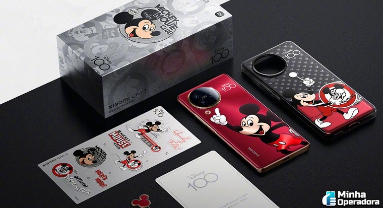 Assim como já noticiamos há alguns meses atrás, a parceria da Xiaomi com a Disney deu fruto. As empresas lançaram um novo smartphone temático, o Xiaomi Civi 3 100th Anniversary Edition, que conta designs do Mickey Mouse por toda parte, além de vir em embalagem personalizada, acessórios e uma interface personalizada.