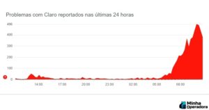Na manhã desta terça-feira (1º), diversos clientes da Claro foram às redes sociais reclamar de que estão com dificuldades de acessar os serviços da operadora, como a internet móvel. De acordo com o Downdetector, plataforma que monitora o funcionamento de vários serviços, por volta das 7h, houve um salto nas reclamações (mais de 550 queixas).