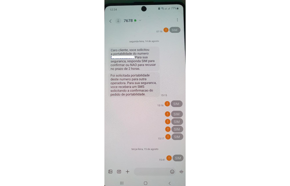 Tanto a operadora atual quanto a operadora de destino conduzem uma análise para verificar se o pedido provém do mesmo usuário e para identificar quaisquer indícios de atividades fraudulentas. Se não forem identificadas irregularidades, a transferência de número é aprovada. Nesse momento, um SMS é encaminhado ao cliente, e para efetuar a autorização definitiva da migração, o cliente deve responder com o termo “SIM”.