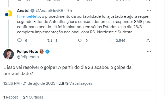 Essa dificuldade ocorre porque a etapa de responder com o termo “SIM” é de extrema importância. A Anatel abordou essa questão, hoje, dia 21, em uma conversa na rede social X.