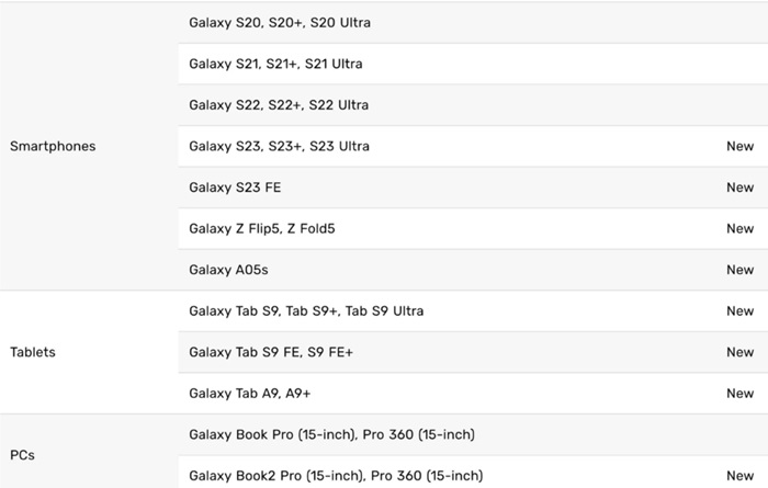 No início de 2023, a linha S22 e alguns Galaxy Pro foram adicionados e agora, todo o carro-chefe S23 e as linhas dobráveis estão se juntando à família conserte você mesmo da Samsung. Entretanto, os smartphones dobráveis só estão disponíveis no Self Repair da Europa e Coreia do Sul.
