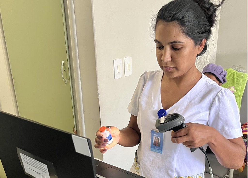 O computador faz a leitura de um código de barras na pulseira do paciente, mostrando os medicamentos necessários e os horários. “Com isso garantimos segurança aos pacientes, que ele é a pessoa certa, recebendo o medicamento certo, na hora certa, com todo o rastreio, sem atrasos”, explicou Tadeu Perona, lembrando que esse controle facilita também o fechamento de contas dos pacientes, economizando consumo de papel.