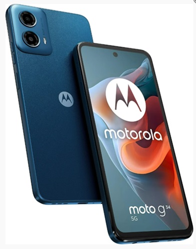 O processador é o Snapdragon 695 e com uma tela de 6,5 polegadas HD+ com taxa de atualização de 120 Hz. Seu conjunto de câmera vem com uma principal de 50 Mp e a selfie de 16MP. O Moto G34 5G vem com uma bateria de 5.000 mAh e carregador TurboPower de 20 W. Possui suporte ao 5G e ao eSIM.