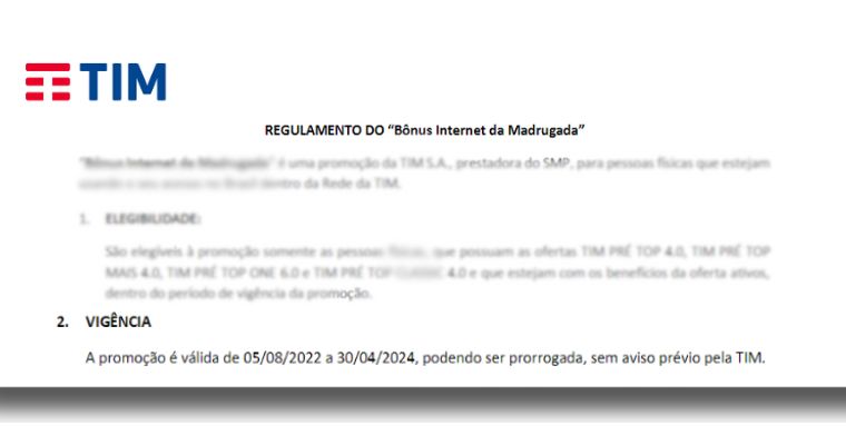Durante o período da promoção, os clientes elegíveis têm direito a benefícios específicos de acesso à internet durante o período da madrugada, conforme as condições e termos estabelecidos pela TIM.