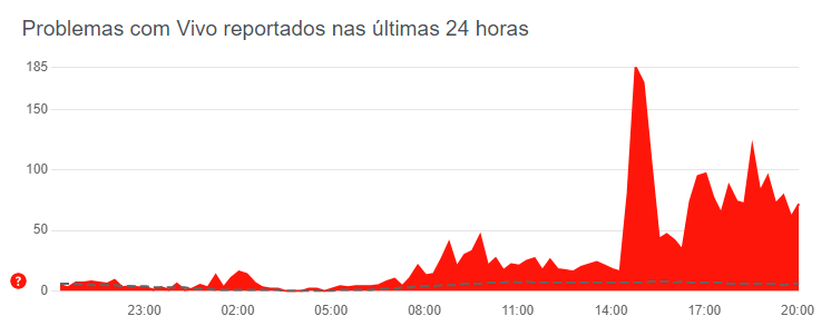 O pico de reclamações no Downdetector começou entre 14h30 e 15h e segue com um grande número de queixas até a noite.