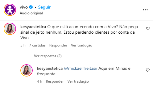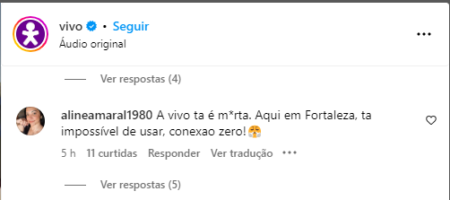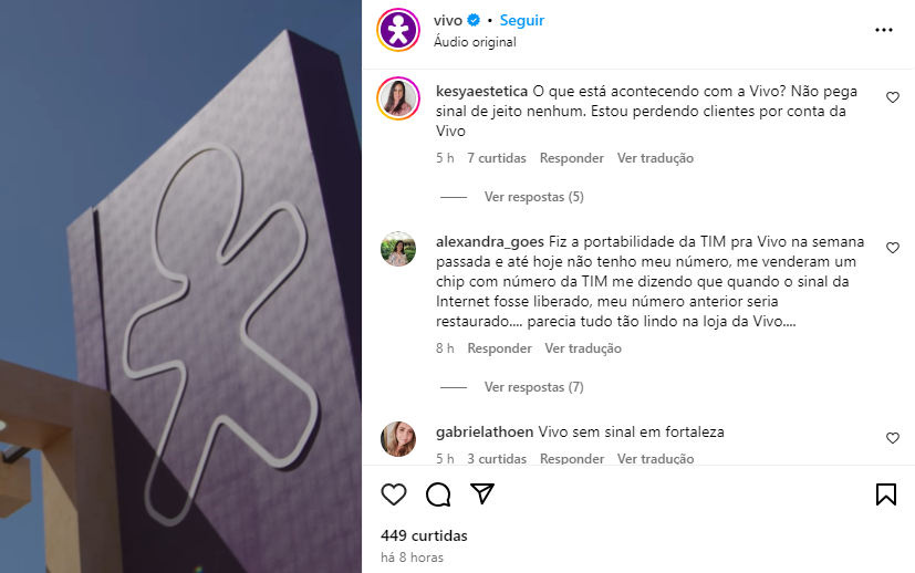 No Perfil oficial da Vivo no Instagram, assim no X, também há várias reclamações sobre queda de sinal. No último post da operadora os clientes comentaram sobre problemas nos serviços: