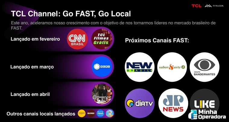 Durante o painel “TCL Channel: Do Sucesso Global para o Crescimento Local, Conectando Todos os Públicos na Era do FAST“, a empresa também aproveitou para anunciar suas novas parcerias estratégicas e exclusivas. O TCL Channel firmou uma colaboração com o Grupo Bandeirantes, para a criação e lançamento de três canais FAST de IP único em junho: Faustão na Band, 1001 Perguntas, apresentado por Zeca Camargo, e Linha de Combate.