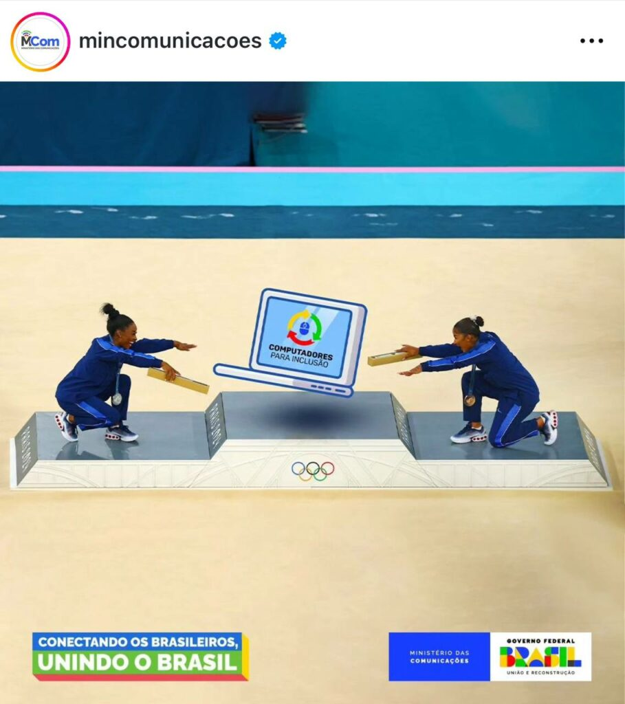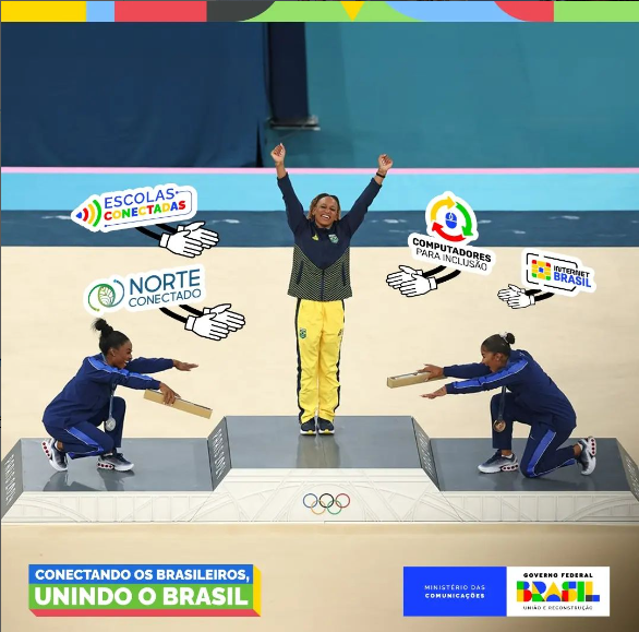 O Ministério das Comunicações protagonizou uma situação inusitada e inesperada de segunda a terça-feira desta semana. Após a medalha de Ouro na Olimpíada em Paris, a atleta Rebeca Andrade chamou a atenção do mundo com uma foto no pódio onde foi reverenciada pelo segundo e terceiro lugar. O governo usou dessa imagem para fazer propaganda.