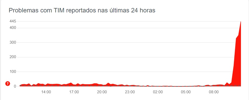 Na manhã de hoje, o site aponta que a instabilidade na rede começou por volta das 10h. No momento, atinge um pico de mais de 400 reclamações. O usuário Rafael Costa, em seu perfil no X (ex-Twitter), reclamou que está tendo problemas tanto com o sinal móvel da TIM quanto no serviço de banda larga.