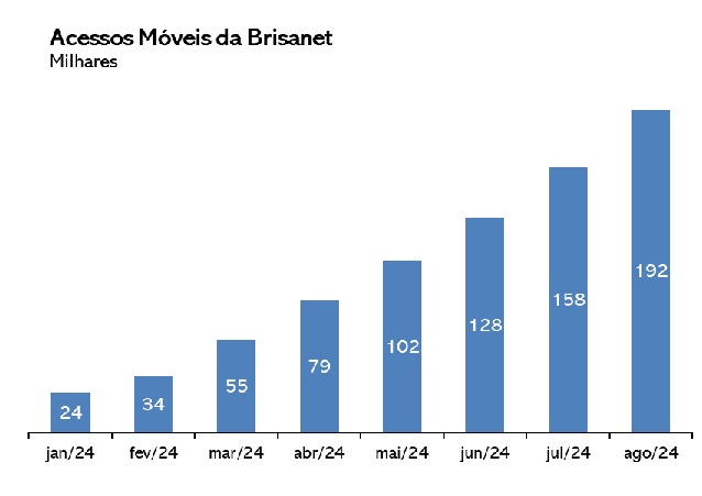 A Brisanet está em plena expansão de sua rede 4G e 5G no Nordeste, com foco principalmente no estado do Ceará. Em agosto de 2024, a empresa já possuía 192 mil acessos móveis, dos quais 189 mil eram em 4G e 3 mil em 5G. Todos esses acessos são de planos pós-pagos.