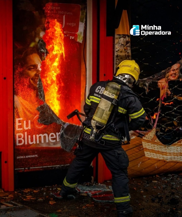 Loja da Claro está entre as destruídas por incêndio em Blumenau