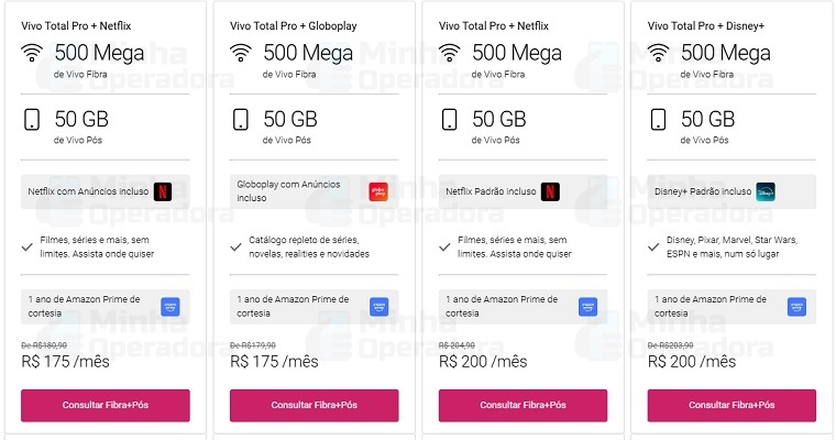 A Vivo anunciou nesta terça-feira (18) o lançamento de um novo portfólio “Vivo Total”, que agora inclui assinaturas dos serviços de streaming Disney+, Globoplay ou Netflix em planos integrados de Fibra e Pós-pago. A novidade chega com opções customizáveis a partir de R$ 175 mensais.